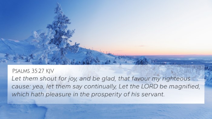 Let them shout for joy, and be glad, that favour my righteous cause: yea, let them say continually, Let the LORD be magnified, which hath pleasure in the prosperity of his servant.