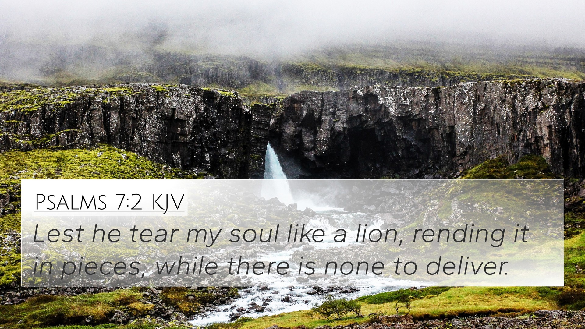Bible Verse: Psalms 7:2 - "Lest he tear my soul like a lion, rending it in pieces, while there is none to deliver."