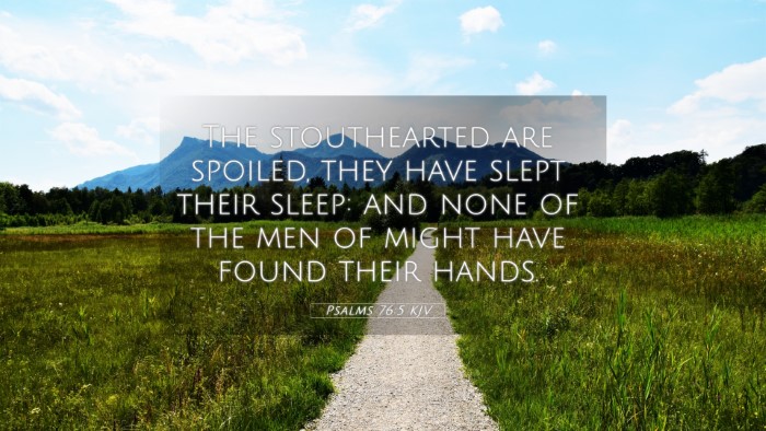 Psalms 76:5 serves as a profound reminder of God's control over human affairs, emphasizing that true strength is not in human might but in divine sovereignty. Through thematic Bible verse connections and cross-referencing Bible study methods, believers can deepen their understanding of this essential truth.