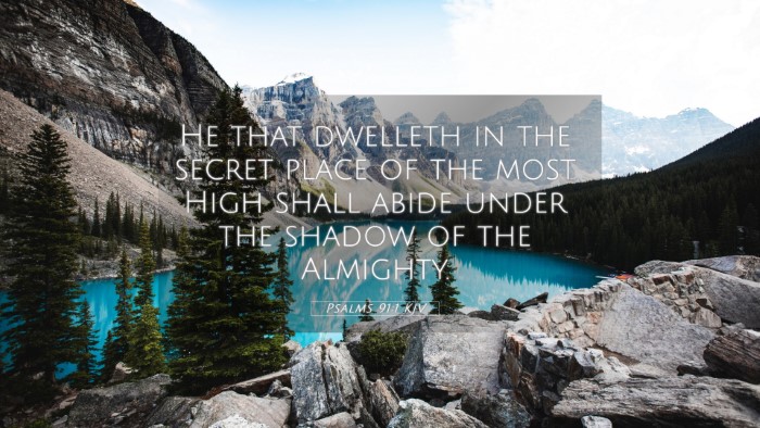 This verse, "He who dwells in the secret place of the Most High shall abide under the shadow of the Almighty," holds profound significance and offers comfort and assurance of God's protective presence for believers. Below, we outline insights drawn from public domain commentaries, and we will explore its meanings through comparative analysis with related scriptures. This exploration will help deepen understanding of this verse within the broader biblical context.