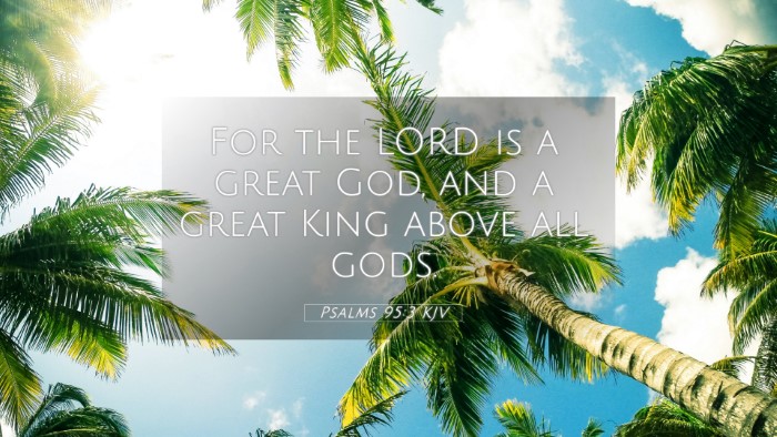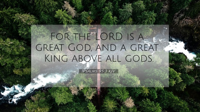 Psalms 95:3 not only affirms the greatness of God but serves as a bridge to various theological discussions found throughout the Old and New Testaments. By examining cross-references and thematic linkages, believers can grasp the interconnectedness of Scripture, enhancing their understanding of God's character.