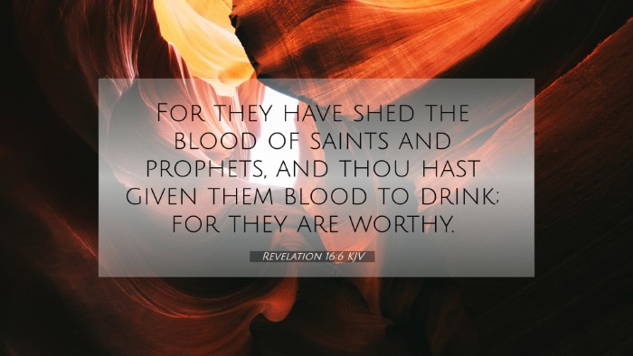 Below, you will find carefully selected verses that echo the themes and teachings related to Revelation 16:6 KJV. Click on any image to explore detailed analyses of related Bible verses and uncover deeper theological insights.