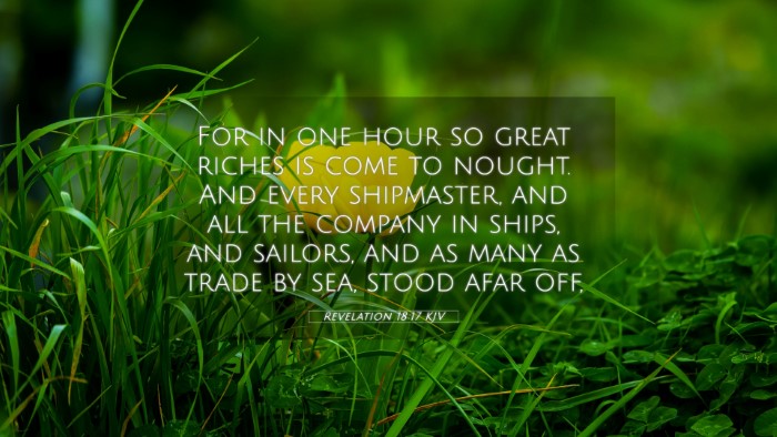 Revelation 18:17 serves as a potent reminder of the fleeting nature of earthly wealth and the swift consequences of turning away from divine principles. Through careful study and cross-referencing, believers can gain profound insights into its message and apply these lessons to their lives.