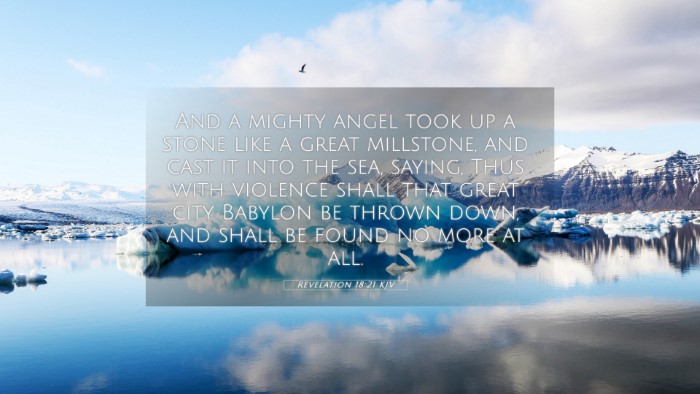 Barnes highlights the symbolism of the millstone and its association with inevitable judgment. He explains that the destruction of Babylon represents the downfall of all that opposes God's will. Barnes draws parallels between this event and the prophetic declarations in the Old Testament regarding the fate of nations standing against God's rule.