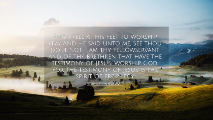Below, you will find carefully selected verses that echo the themes and teachings related to Revelation 19:10 KJV. Click on any image to explore detailed analyses of related Bible verses and uncover deeper theological insights.