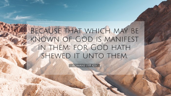 Romans 1:19 serves as a pivotal reminder of God's revelation and the inherent understanding of His existence within all of humanity. Through careful study and scriptural cross-referencing, believers can strengthen their faith and appreciate the comprehensive narrative of God’s world.