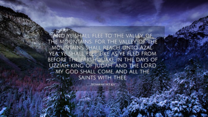 Zechariah 14:5 serves as a poignant reminder of God's power and faithfulness in times of tribulation. By exploring various commentaries and cross-referencing other significant Bible verses, one can appreciate the deeper layers of meaning embedded within this verse.